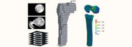 Besides its general impact on bone biomechanics and fracture risk, marrow fat can impact the damping properties of bones, which may contribute to bone remodeling and the development of osteoporosis [1-3]. Developing a detailed computational model based on CT scans could provide valuable insights into how marrow fat affects the mechanical properties of vertebral bone. A central method of our research is the Finite Cell Method (FCM), which is highly suitable for this project due to its ability to simulate microstructured/heterogeneous materials derived from CT scans [4,5]. This method has been effectively employed in CT-based structural analyses of bones, as demonstrated in the work by Schillinger et al. [6], see Figure above. This project aims to investigate the influence of fat in vertebral bone by employing and advancing the Finite Cell Method and Spectral Cell Method to simulate the bone’s elastodynamic behavior, elucidating a potential risk factor for fractures and metabolic bone disease.